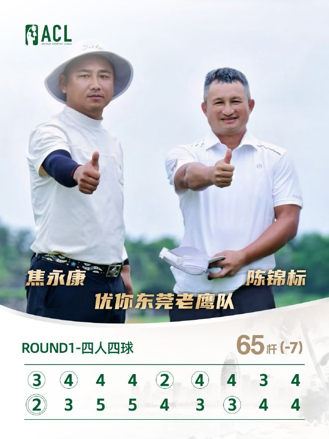 “主要还是标哥带着我,一路鼓励、帮我放松心态。我们互相补位,感觉特别顺!”替补出场却带来惊艳表现的焦永康赛后将功劳归于队友陈锦标的鼓励。尤其是在第10洞(346码,四杆洞),陈锦标第二杆顶风105码,用48度挖起杆直接击球进洞,射下老鹰!“整体来说,非常不错,打出了惊喜。”焦永康总结道。