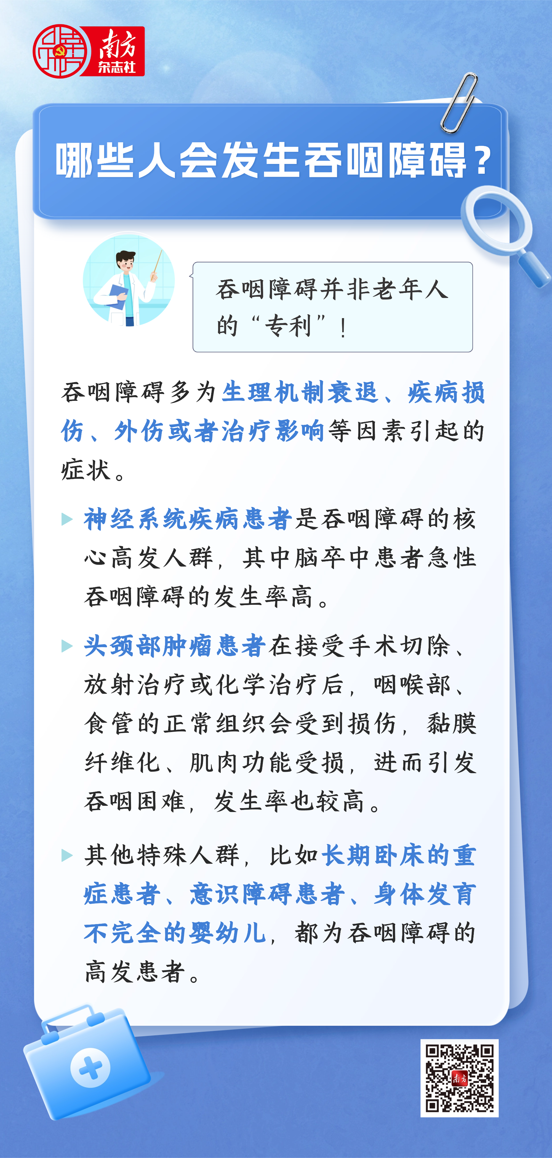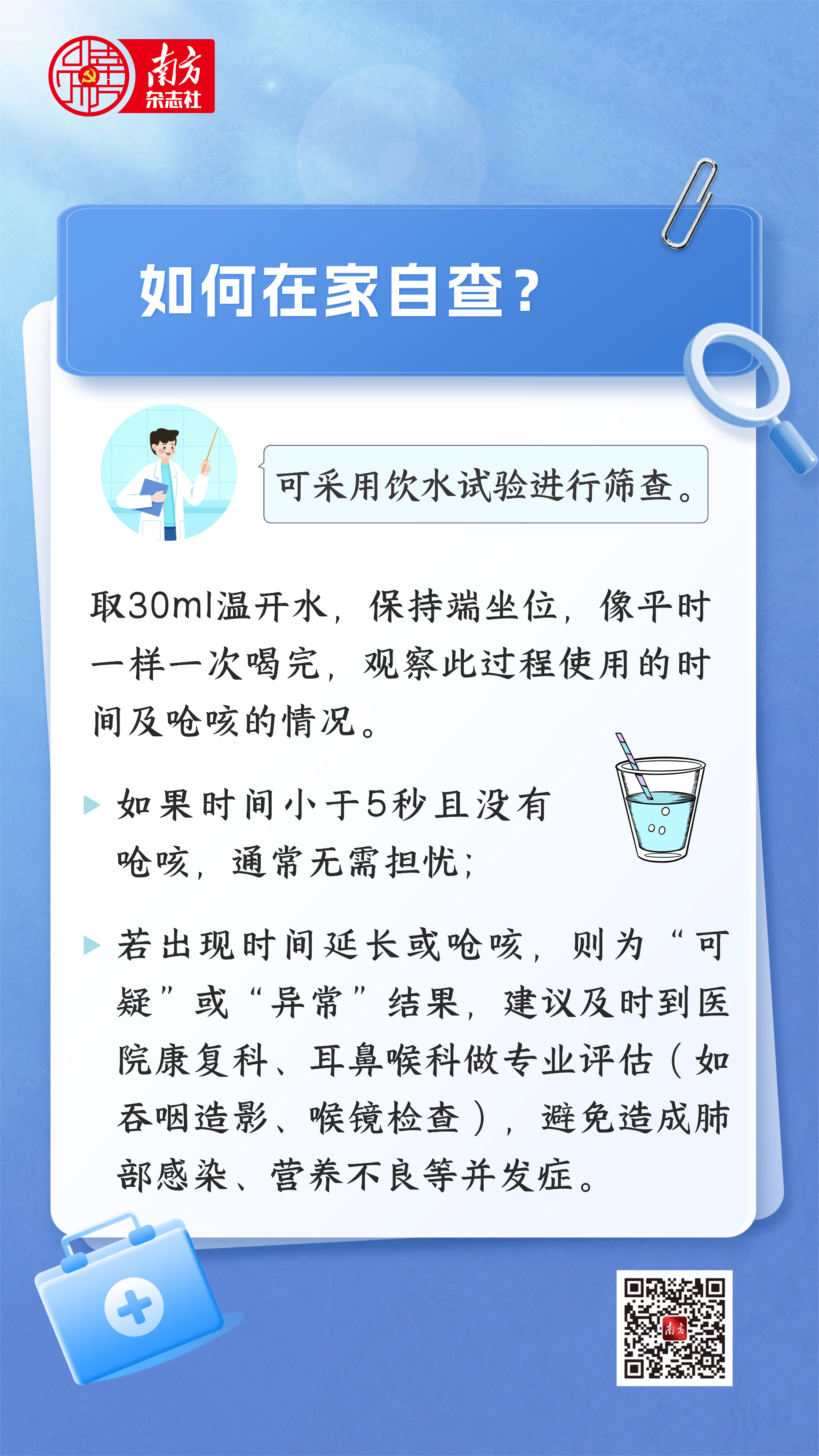 进食饮水易呛咳、喉咙堵塞感、声音浑浊沙哑、体重不明原因下降……这些都可能是吞咽功能障碍的信号!如果不及时干预,可能影响营养摄入、引发吸入性肺炎,甚至危及生命。