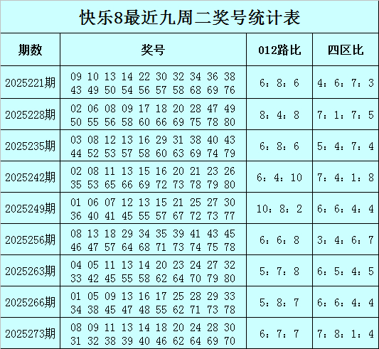 福彩快乐8第2025273期(上周二)开奖回顾:08 09 11 13 14 18 20 24 28 30 31 32 38 39 40 46 62 64 69 70,其中奖号四区比为7:8:1:4,012路比为6:7:7。