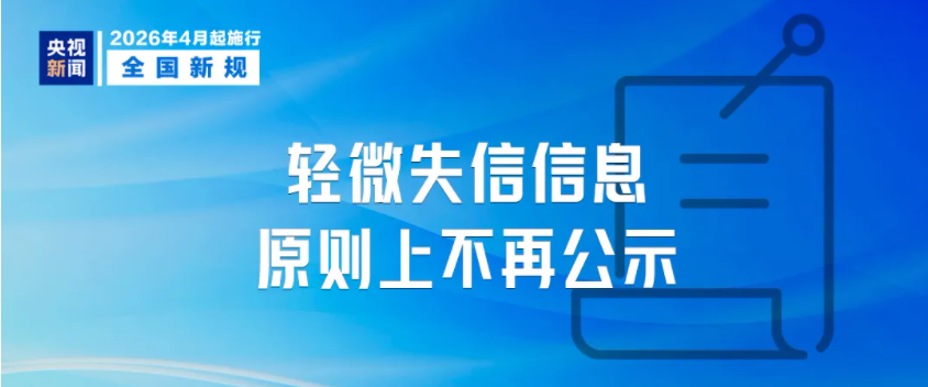 《信用修复管理办法》4月1日起施行。失信信息将按照失信严重程度实行分类管理,原则上划分为“轻微、一般、严重”三类,按照过罚相当原则,分别设置不同的公示期限。原则上不再公示轻微失信信息。