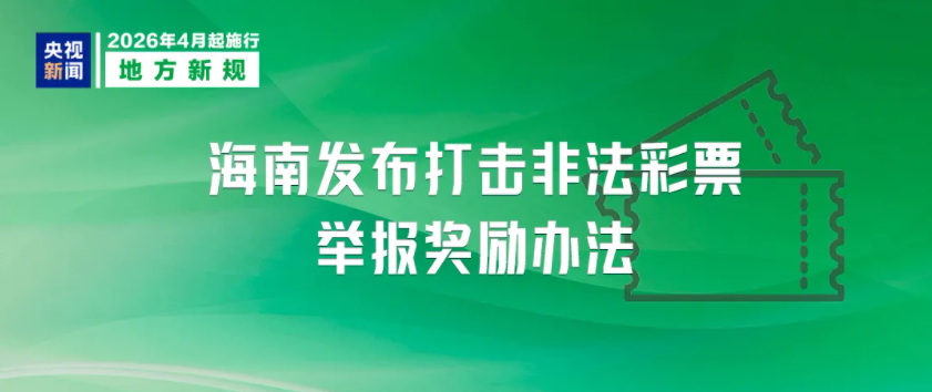 《海南省打击非法彩票举报奖励办法(试行)》4月1日起施行,《办法》设置了阶梯式奖励机制,查实为治安案件的,每案奖励200元至2000元;查实为刑事案件的,每案奖励10000至100000元;举报帮助抓获在逃人员的,每人奖励5000至30000元。