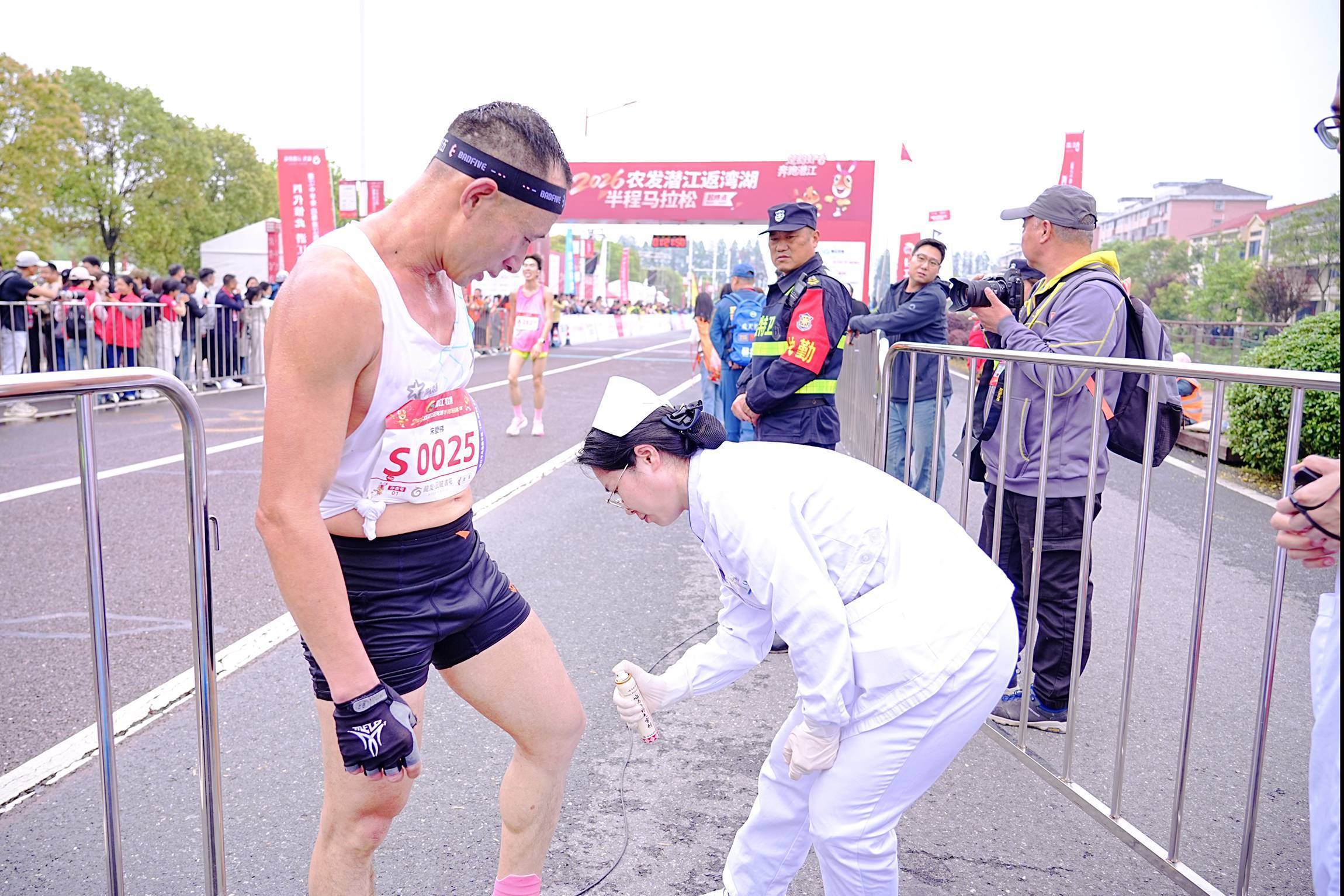 此外,终点冰敷区、拉伸区均配备专业康复师,帮助完赛跑者快速缓解运动疲劳;赛事精准优化交通接驳方案,科学封闭赛道、规划通行路线,最大限度降低对市民日常出行的影响,以精细化、人性化服务,充分彰显潜江的城市温度。